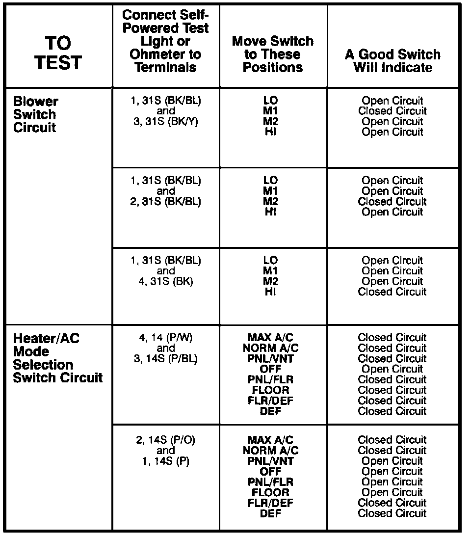A/C-Heater Control Assembly - Component Testing Procedure: