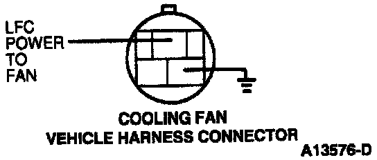 - Measure resistance between the LFC power-to-fan output pin, at the LFC vehicle harness connector and the LFC power-to-fan input pin at the cooling fan vehicle harness connector.