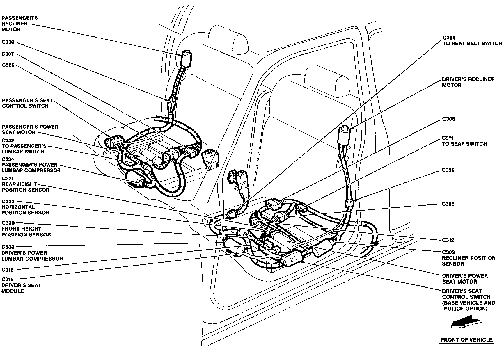 The Driver's Seat Module is located below the driver's seat.