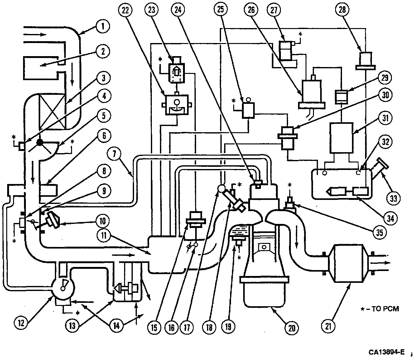 This was one of the first emission control systems. Rather than being vented to atmosphere, crankcase fumes are routed back through the intake system and reburned. Basic systems consist of necessary hoses and a Positive Crankcase Ventilation (PCV) valve to regulate fume flow through the system.