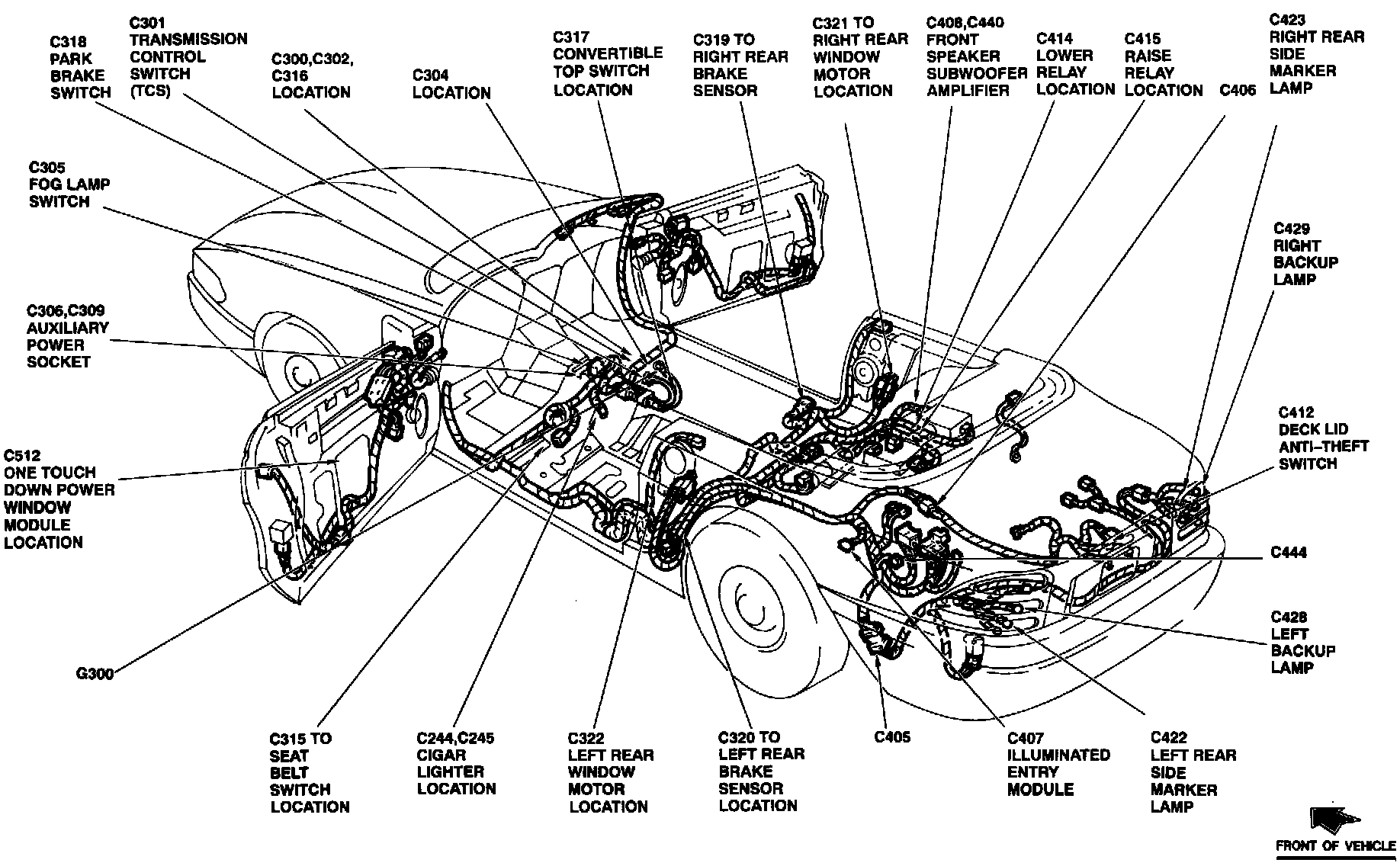The One Touch Down Power Window Module is located at the lower rear of the LH door.