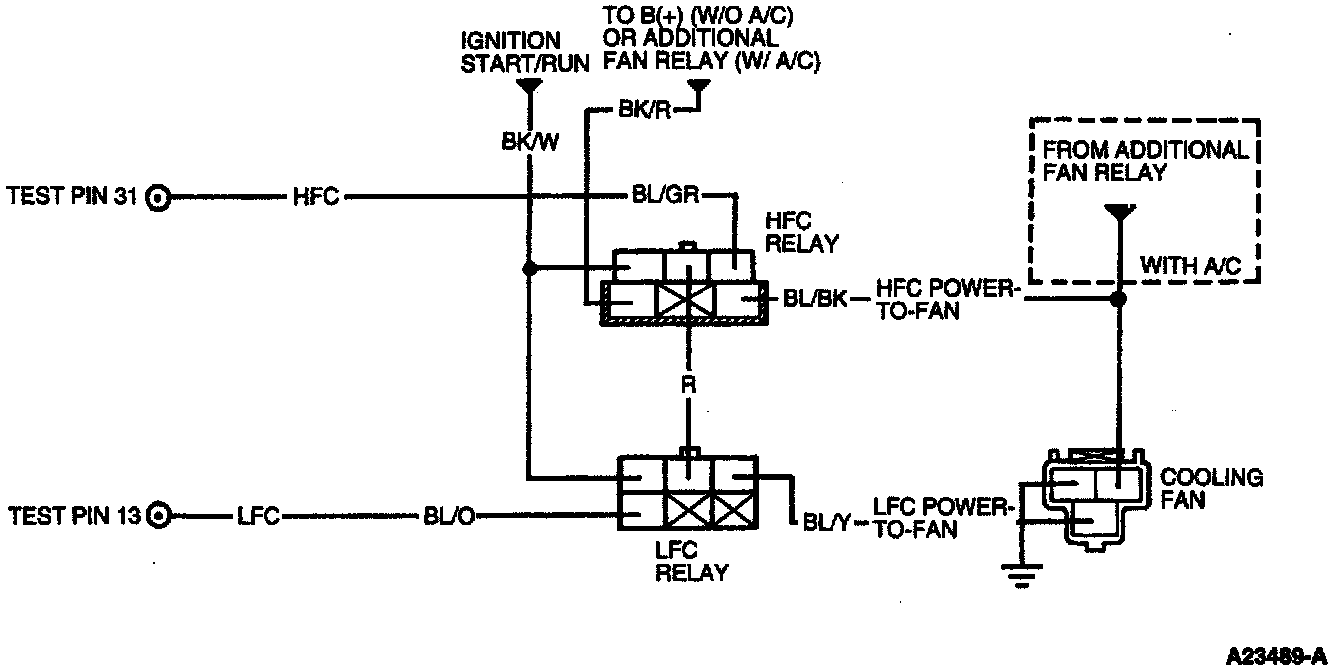 NOTE: "ON" indicates the Powertrain Control Module is grounding the circuit.