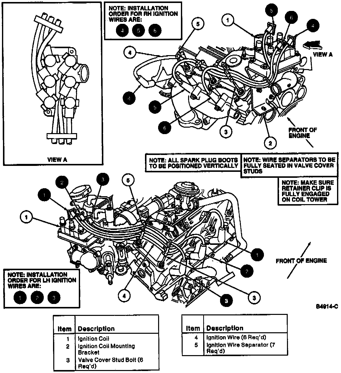 CAUTION: Proper installation of ignition wires is critical to vehicle operation. If any ignition wire is not properly installed on spark plug or ignition coil, both spark plugs connected to that ignition coil may not operate under load.