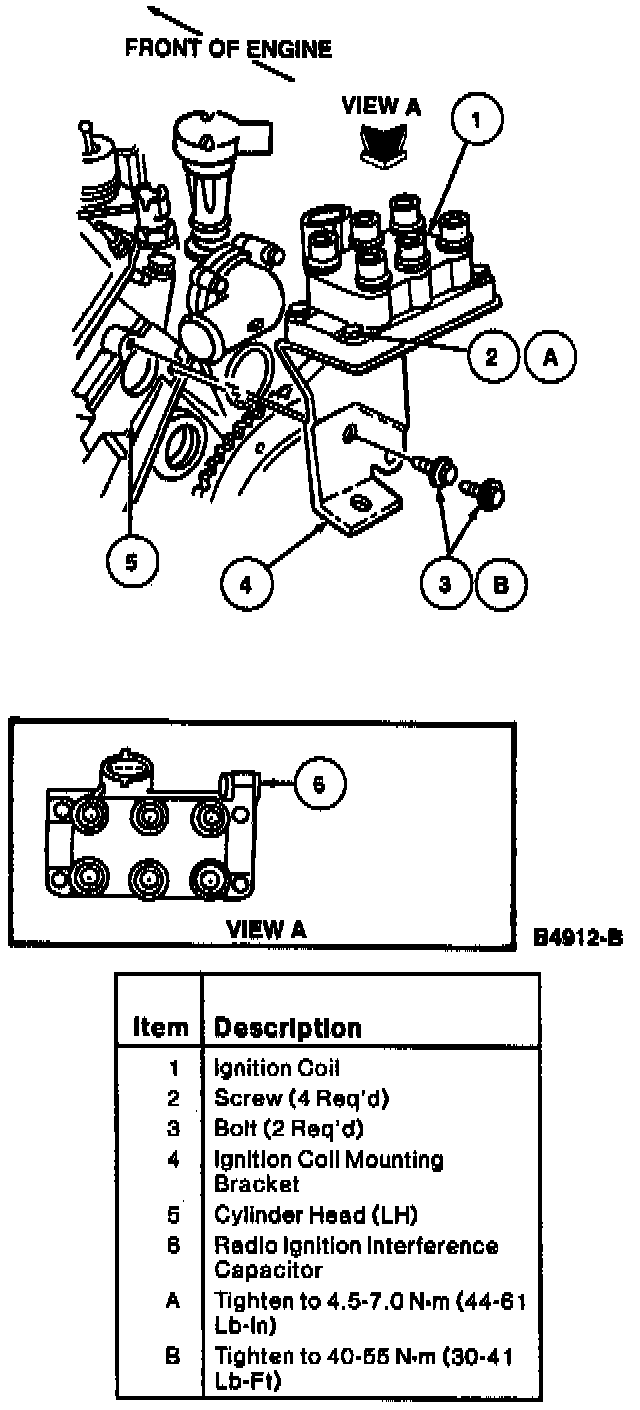 1. Position ignition coil and radio ignition interference capacitor to ignition coil bracket.