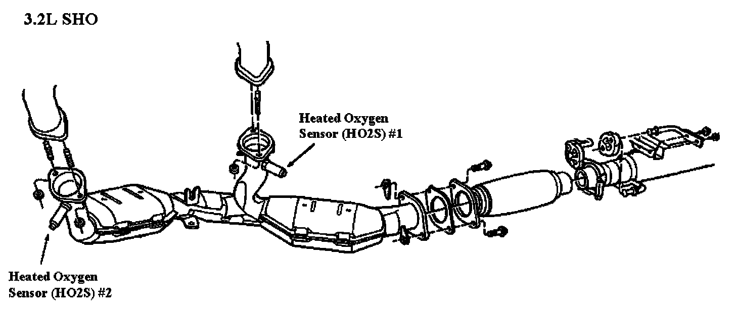 The Heated Oxygen Sensors (HO2S) are located in the dual converter Y pipe.