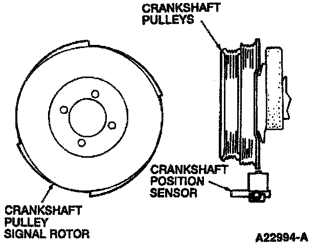 The crankshaft position sensor is mounted on the front of the engine, behind the crankshaft pulley.