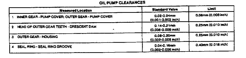 ATX 3-spd A/T, Oil Pump Clearances: