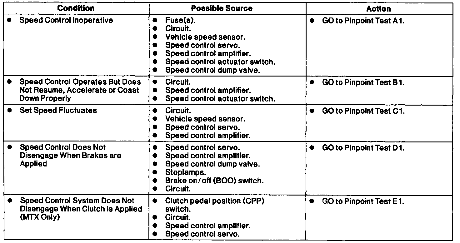 Speed Control Symptom Chart.: