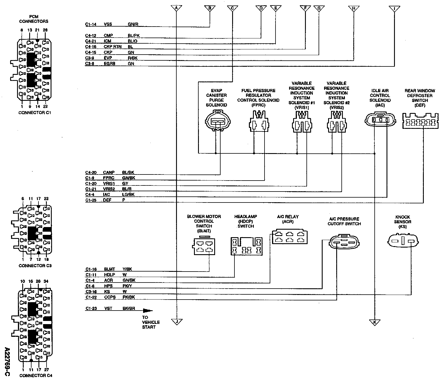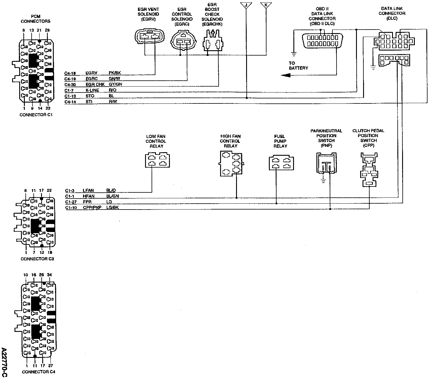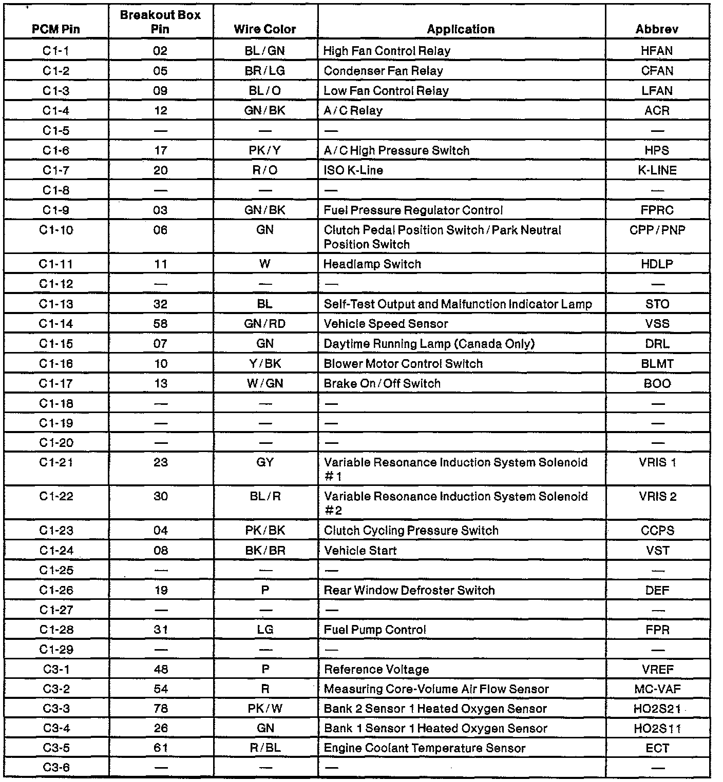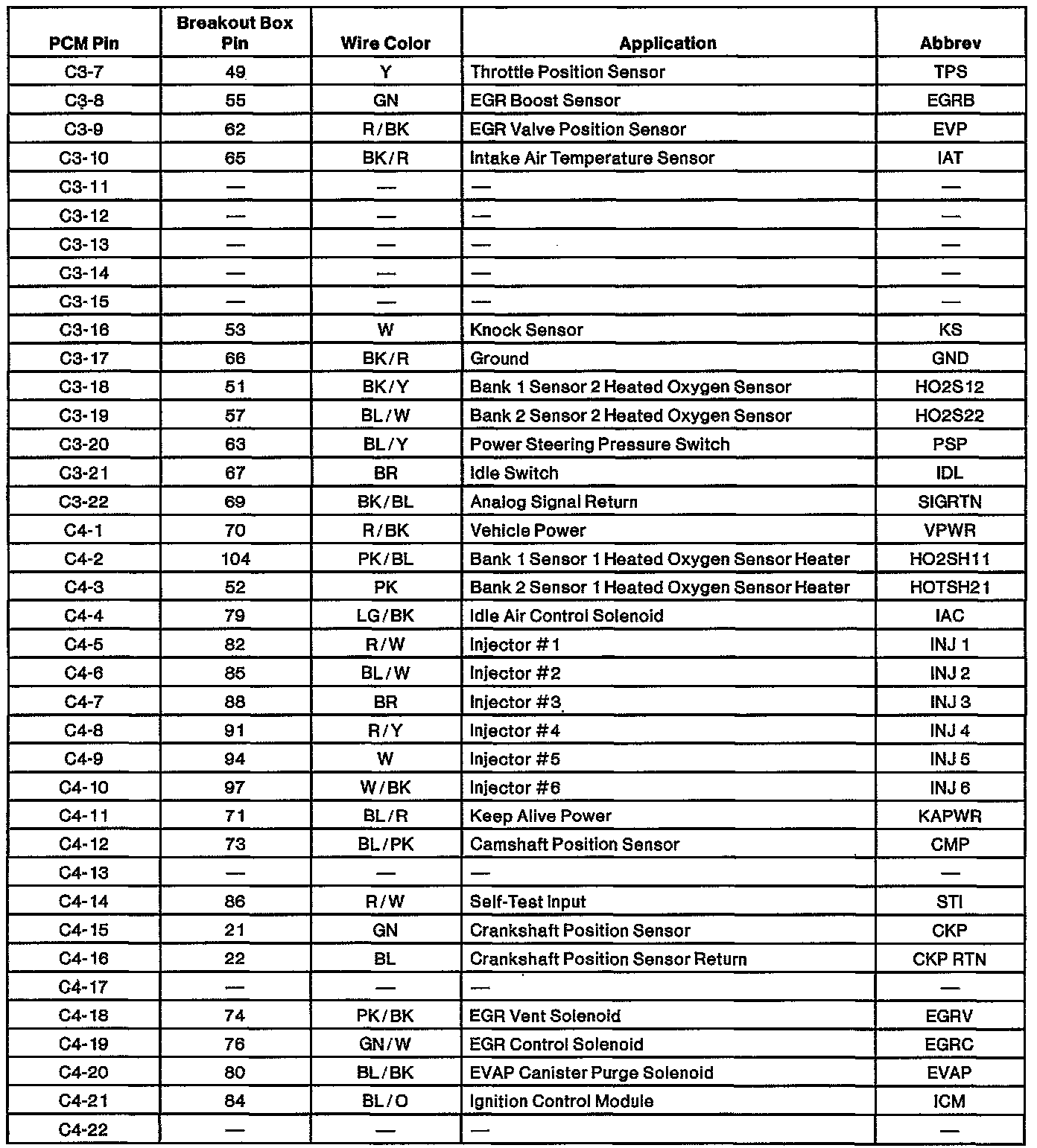 Powertrain Control Module (PCM) Connector Pin Usage: