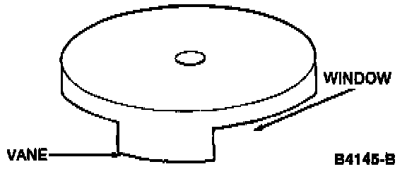 When the window of the vane cup is between the permanent magnet and the Hall sensor, a magnetic flux field is completed from the permanent magnet through the Hall sensor and back to the magnet.