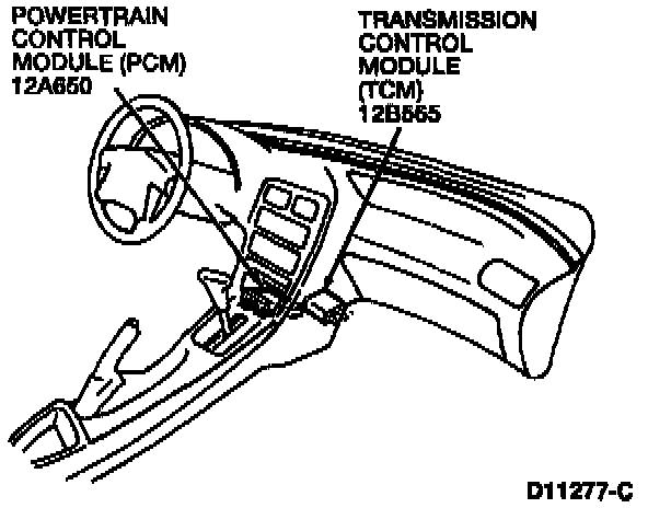 The Transaxle Control Module is located below the center of instrument panel, forward of powertrain control module.