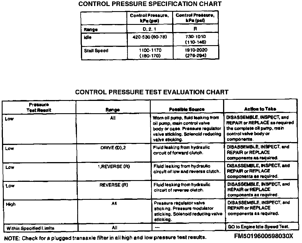 Control Pressure Test Evaluation Chart: