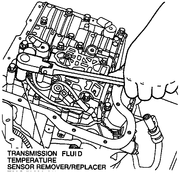 9. Use Transmission Fluid Temperature Sensor Remover/Replacer T92C-77000-AH to remove the sensor from the main control valve body.