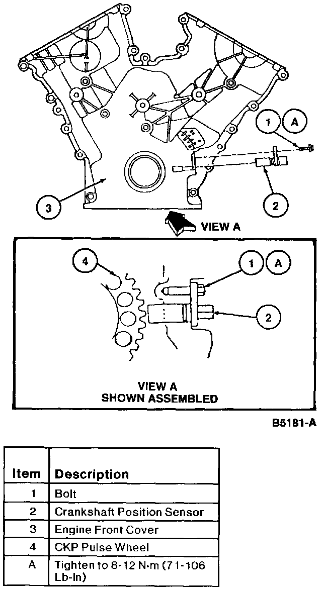 2. Position CKP sensor and install retaining bolt. Tighten retaining bolt to 8-12 Nm (71-106 lb in).