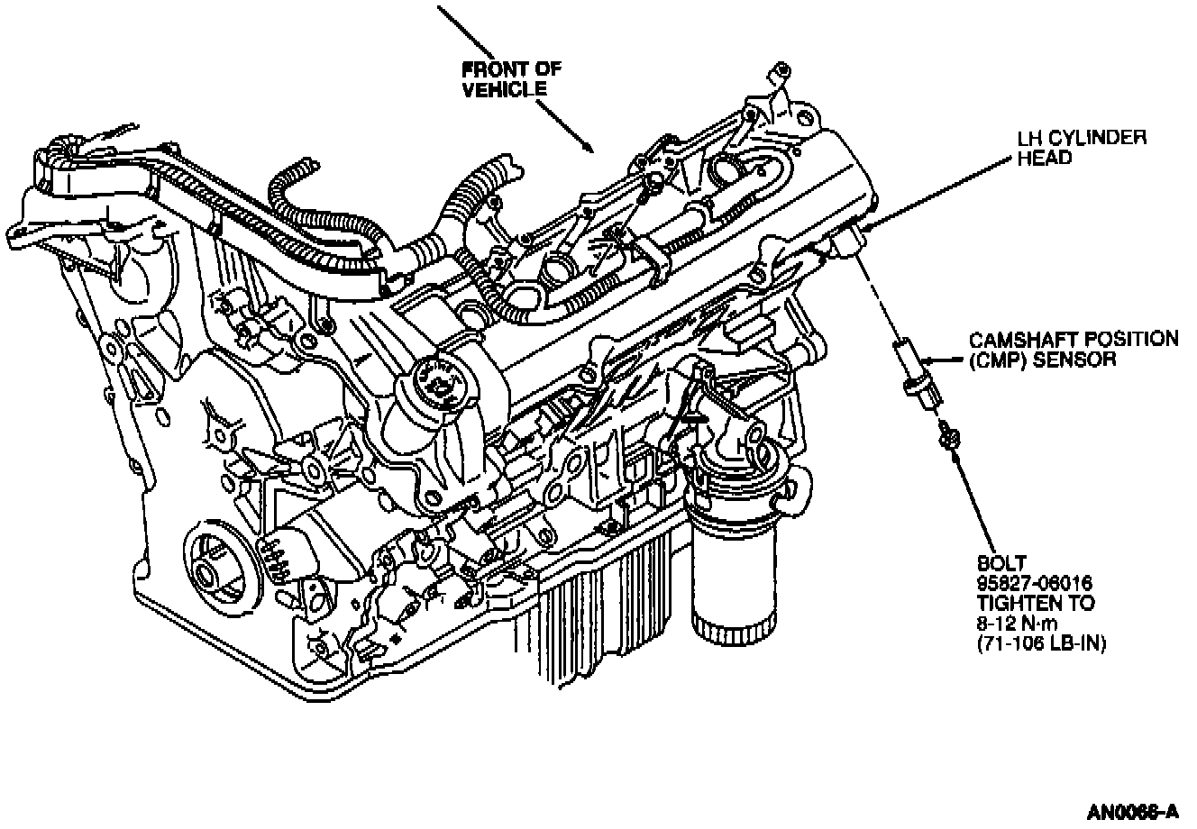 Sensor, (C103) is located at the right top of the engine cylinder head, below valve cover.