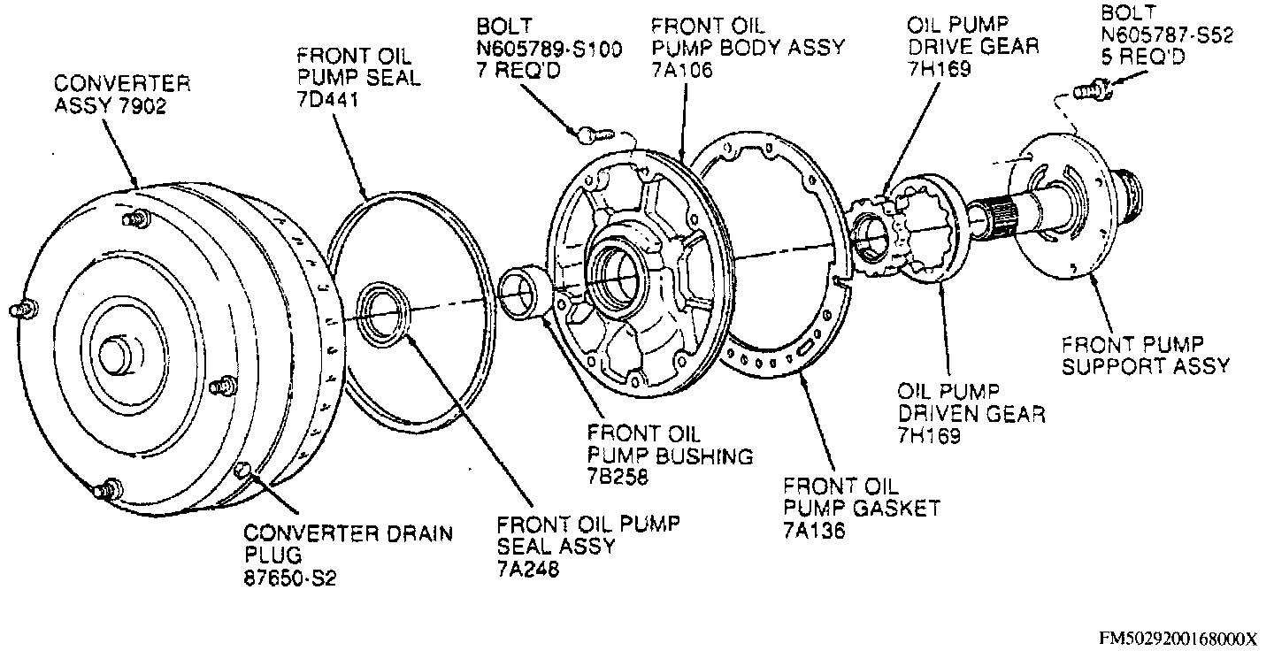 1. Using front pump seal replacer tool No. T63L-77837-A or equivalent, install seal.