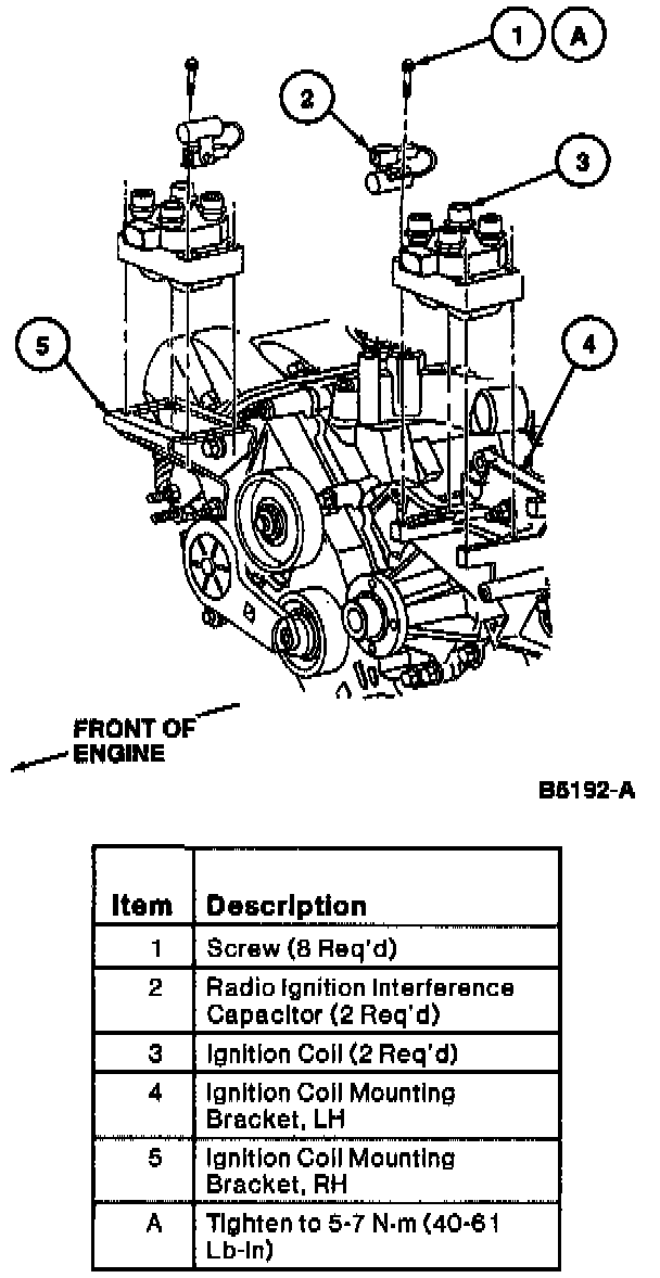 1. Position ignition coils and radio ignition interference capacitors to mounting bracket.
