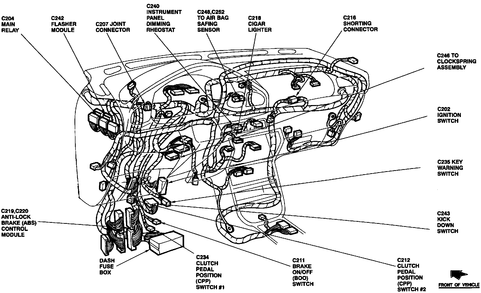The main relay for the powertrain control module is located under the left side of the instrument panel.