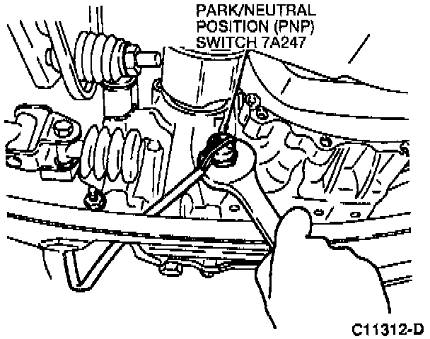 1. Apply Gasket Eliminator E1FZ-19562-A or equivalent meeting Ford specification WSK-M2G348-A4 to the threads of the PNP switch.
