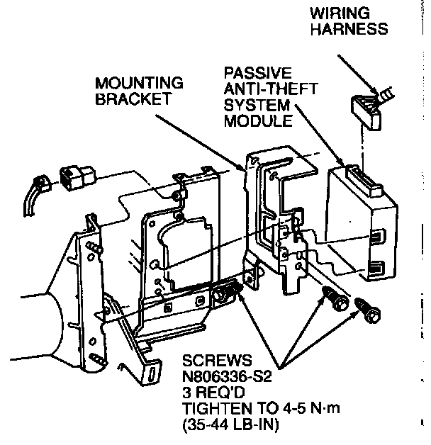 4. Disconnect main wiring harness connector and remove passive anti-theft system module and mounting bracket.