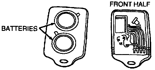 CAUTION: Do not take the front half of the keyless entry remote transmitter apart.