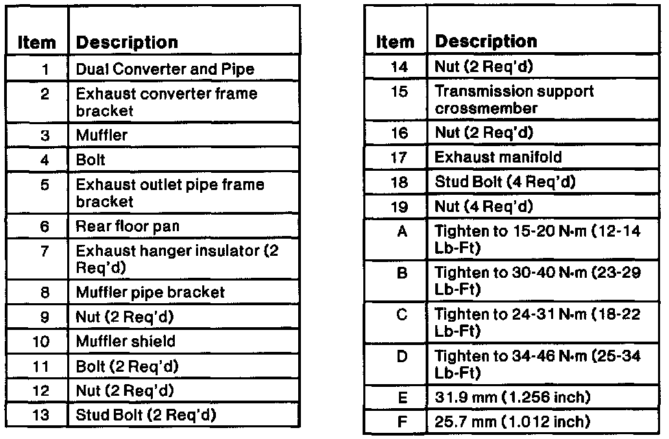 a. Tighten dual converter and pipe to exhaust manifold nuts to 34-46 Nm (25-34 lb ft).