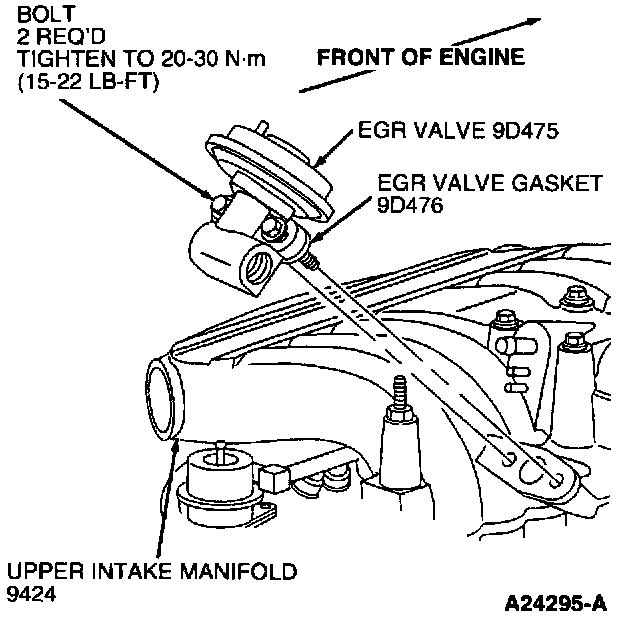 4. Install two bolts retaining EGR valve. Tighten bolts to 20-30 Nm (15-22 lb ft).