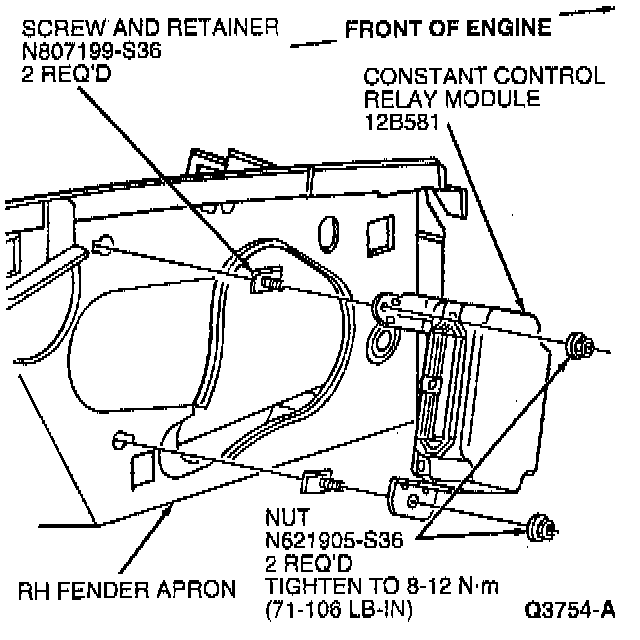 2. Tighten constant control relay module retaining screws securely. Tighten wiring harness bolt to 1.3-2.0 Nm (12-18 inch lbs.).