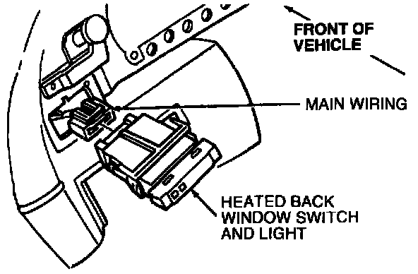 5. Pull the heated back window switch and light completely out of the opening and disconnect the connector. Remove heated back window switch and light from instrument panel.