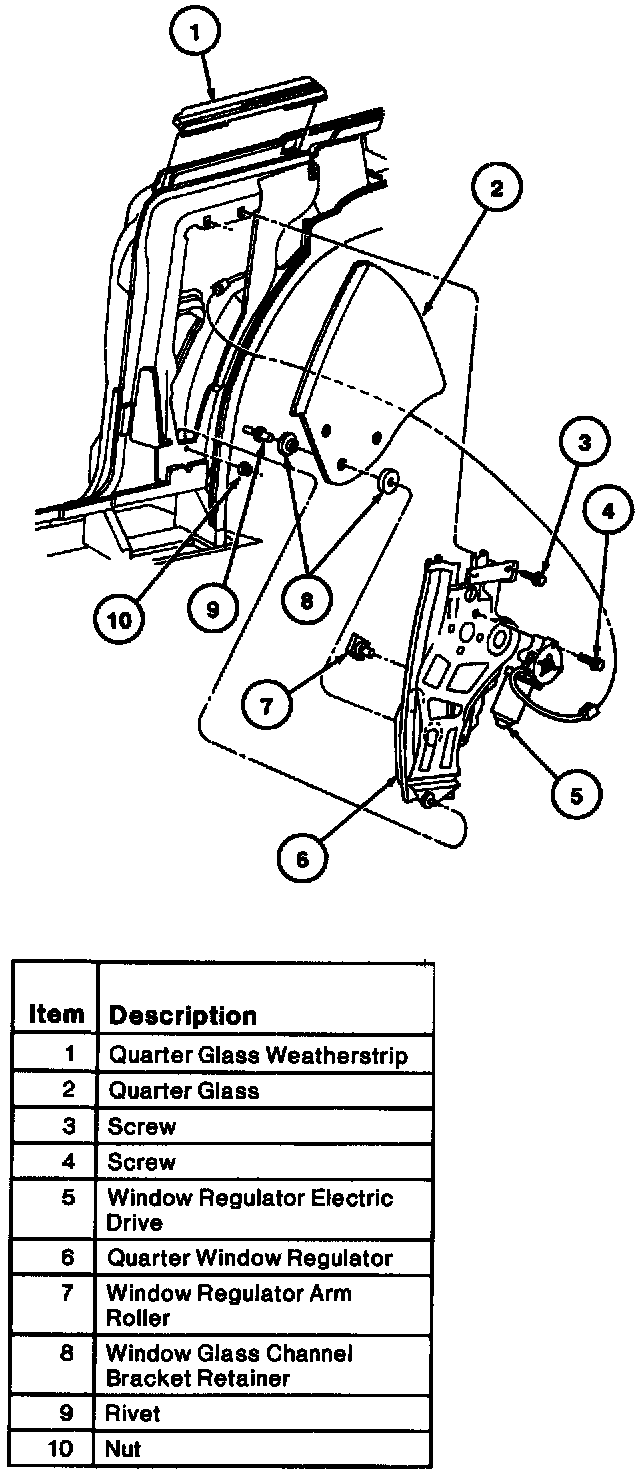 2. Adjust quarter window glass. Refer to Adjustments. Quarter Window