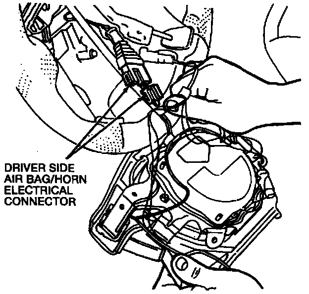 3. Disconnect the driver side air bag/horn electrical connector from the driver side air bag module.