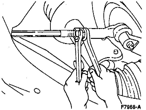 ^ The left and right front wheel spindle tie rods are both right-hand threaded. To increase the toe, turn the right front wheel spindle tie rod toward the front of the vehicle and turn the left front wheel spindle tie rod by the same amount toward the rear of the vehicle.