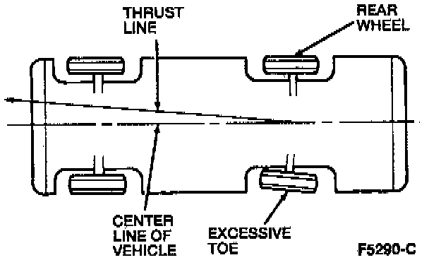 NOTE: The thrust line is the path both rear wheels take as they roll down the road.