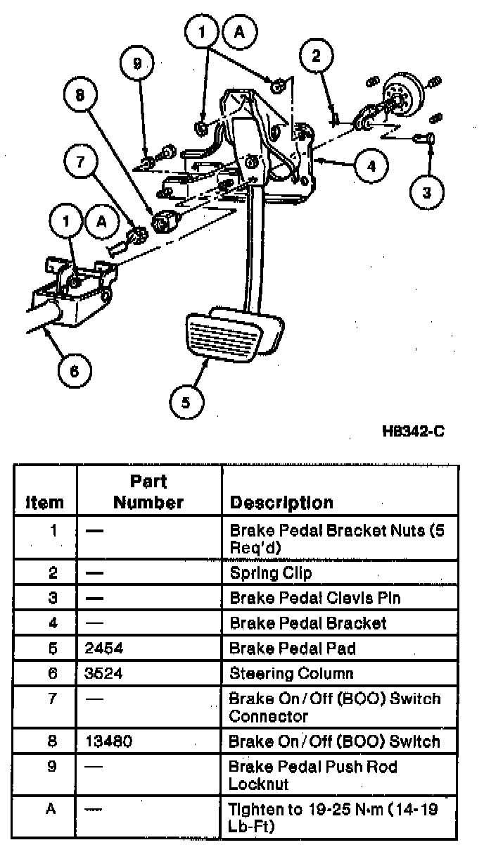 NOTE: To be sure that the BOO switch is securely installed, push the BOO switch until it bottoms out against the brake pedal.