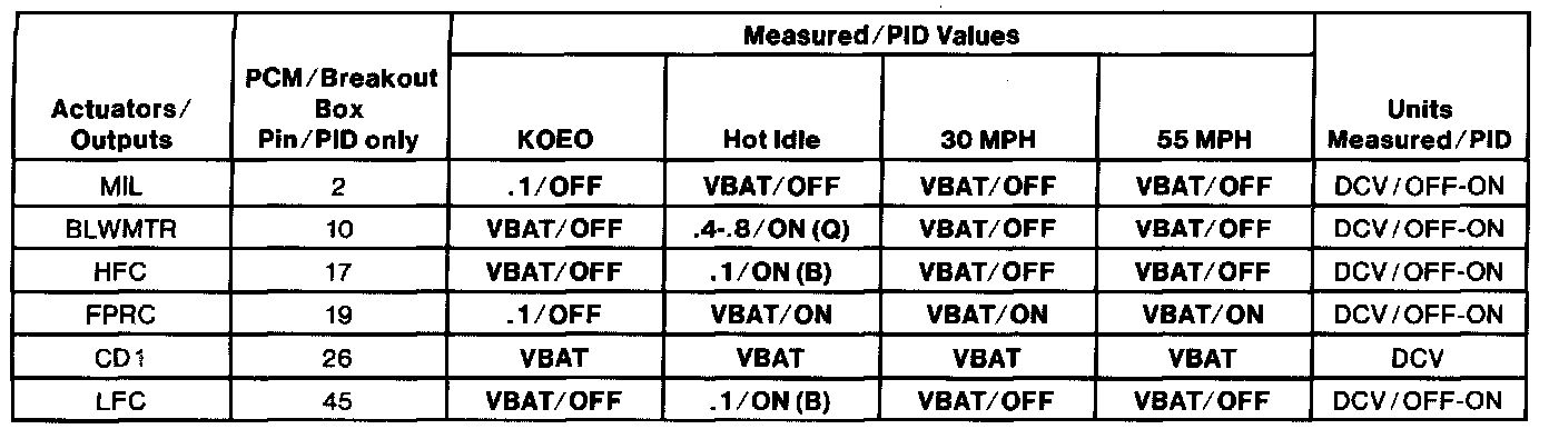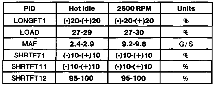 Normal Scan Data Values - Includes Pids