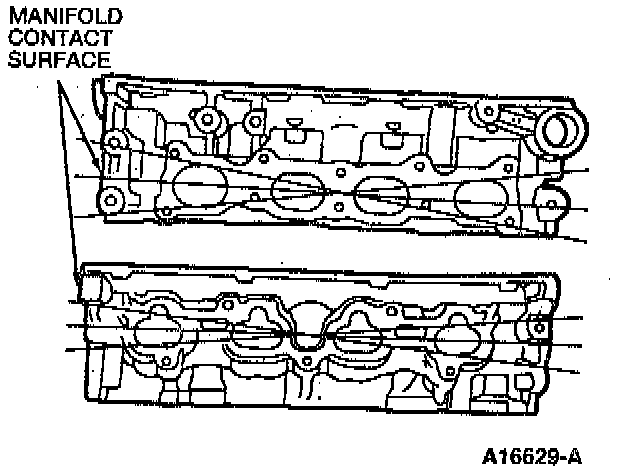 Maximum distortion for the manifold contact surface is 0.1O mm (0.004 inch). If the distortion exceeds specification, grind the manifold contact surface or replace the cylinder head as necessary.