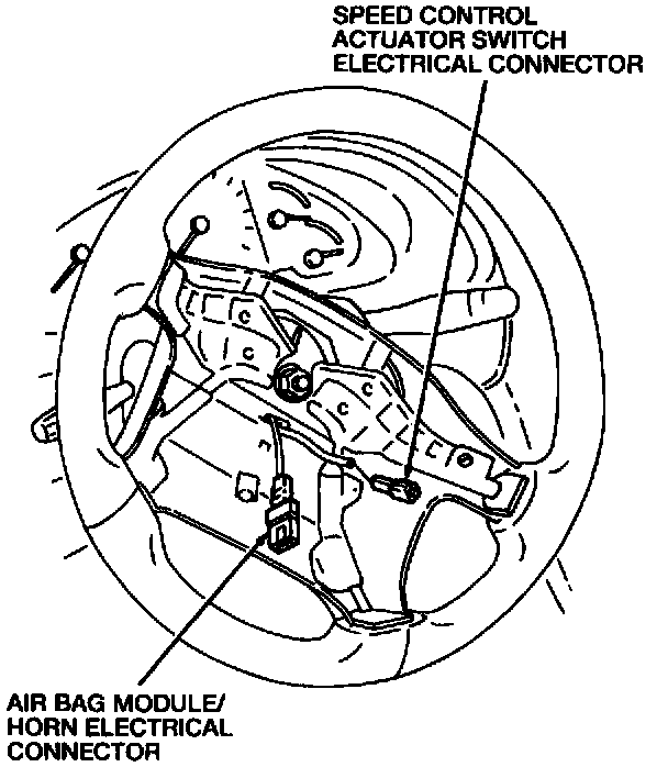 3. Disconnect the driver side air bag/horn electrical connector from the driver side air bag module.