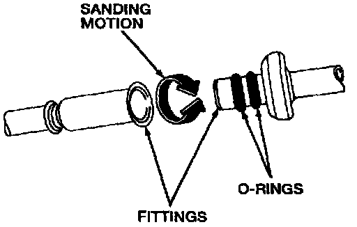 a. Remove any surface residue from the inside of the female spring lock coupling by polishing with 400-grit emery cloth (or equivalent). Polish the female surface by using a twisting motion so that any scratches made will not cross the O-ring sealing surface.