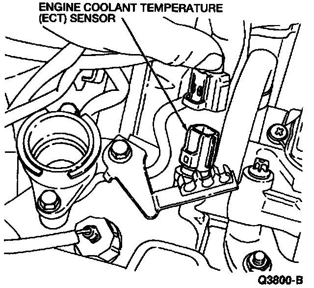 The Engine Coolant Temperature Sensor is located on rear of the engine.