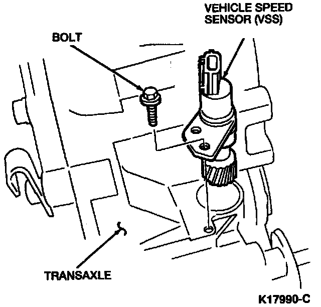 The Vehicle Speed Sensor is located at the lower rear of the transaxle.