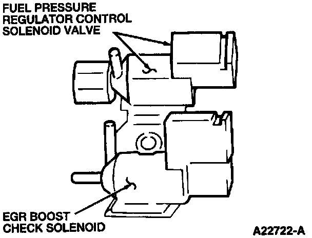 1. Disconnect the five EGR boost check solenoid and fuel pressure regulator control solenoid valve vacuum lines and the EGR boost check solenoid and fuel pressure regulator control solenoid valve electrical connectors.