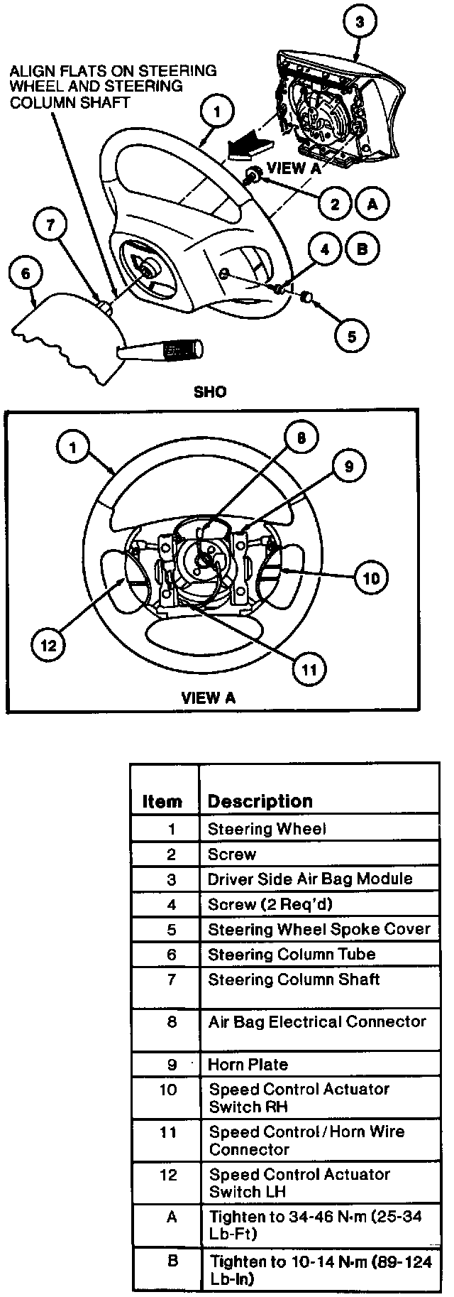 6. Install driver side air bag module to steering wheel. Tighten retaining screws to 10-14 N.m (89-124 Lb-In).