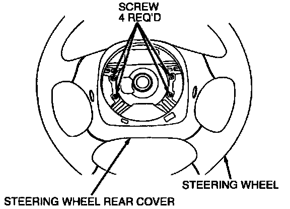 2. Install four screws retaining rear steering wheel cover to steering wheel.
