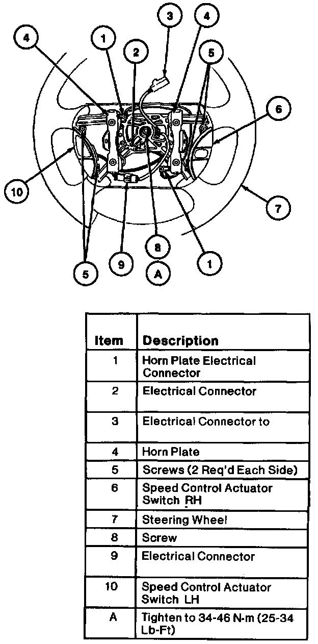 3. Install steering wheel to steering column using new retaining screw. Tighten Torx(R) screw retaining steering wheel to 34-46 N.m (25-34 Lb-Ft).