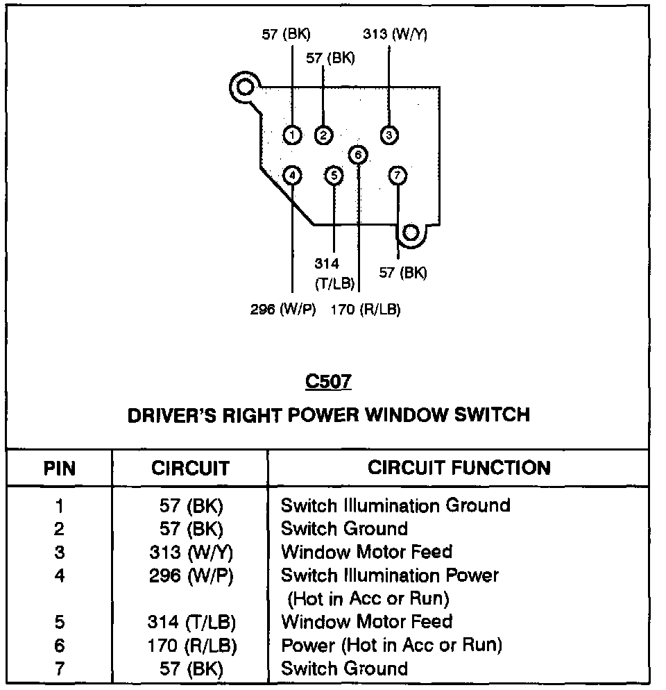 Driver's Right Power Window Switch: