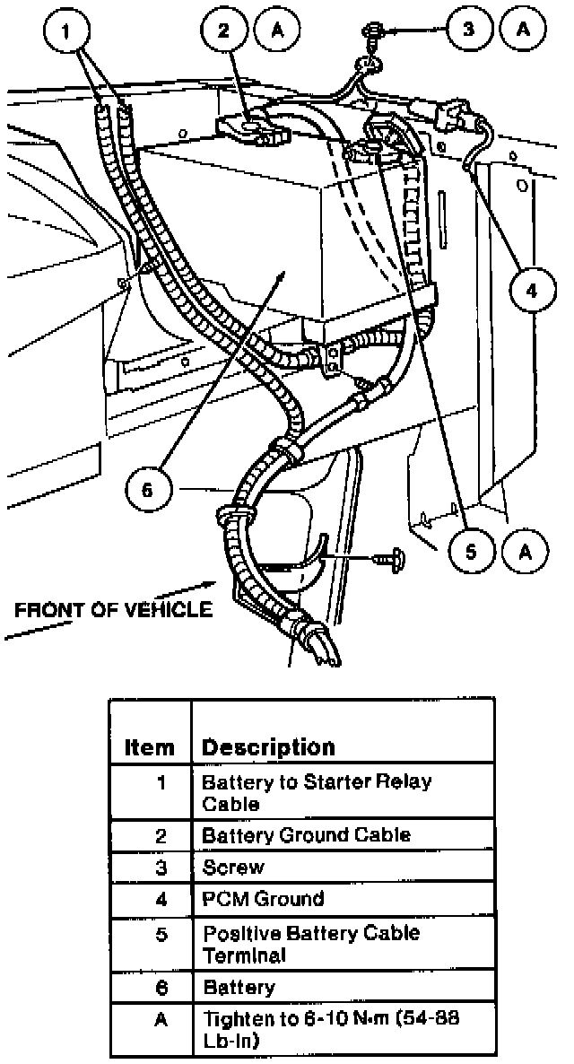 1. Clean cable terminals and battery hold down clamp with a wire brush. Replace all cables or parts that are worn or frayed.