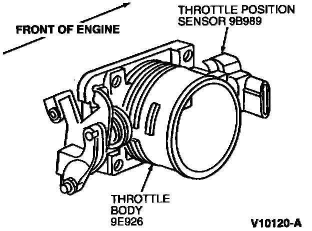 The TP sensor is a potentiometer mounted to the throttle body and engages on the throttle plate shaft. It provides a signal to the Powertrain Control Module (PCM) that is directly proportional to the throttle plate position.