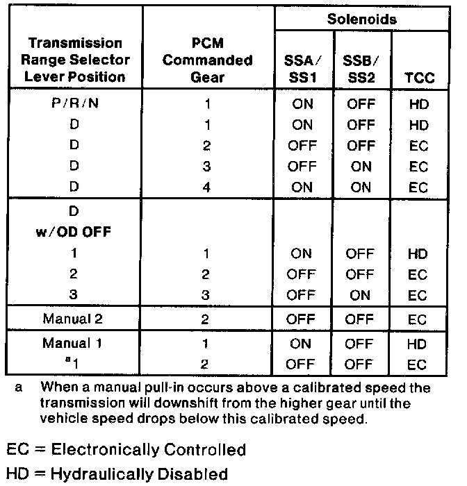 Two ON/OFF shift solenoids are used for electronic shift scheduling. One unit containing the two shift solenoids is located in the main control valve body. The shift solenoids are two- way, normally closed style. Shift solenoids (SS-1 and SS-2) provide gear selection of first through fourth gears by controlling the pressure to the three shift valves. SS-11