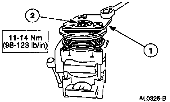 NOTE: The A/C clutch pulley is a tight fit on the A/C compressor head; it must be properly aligned during installation.