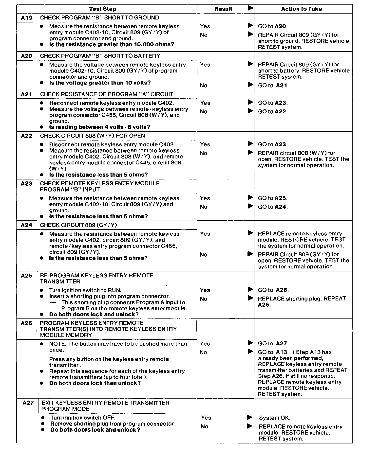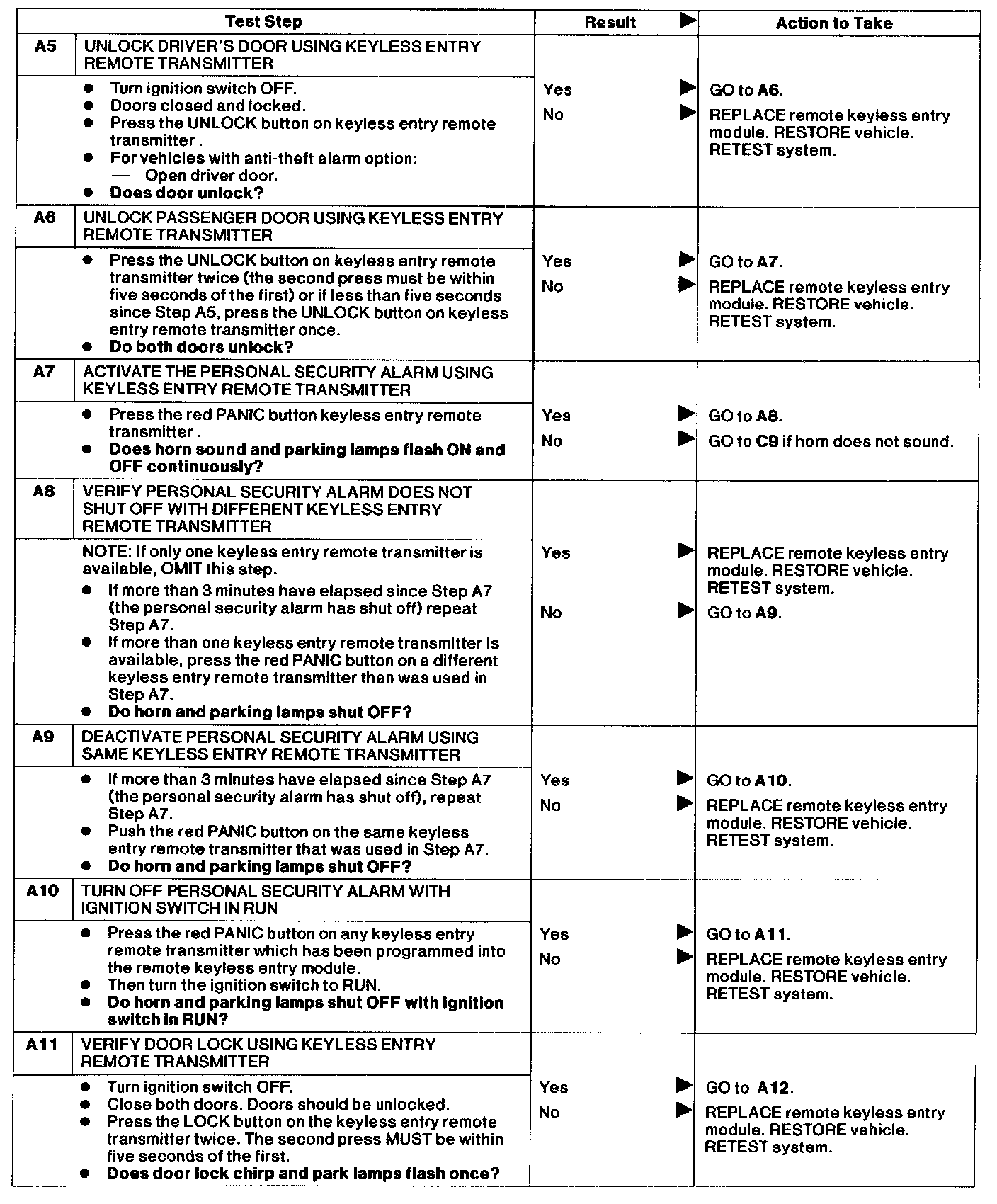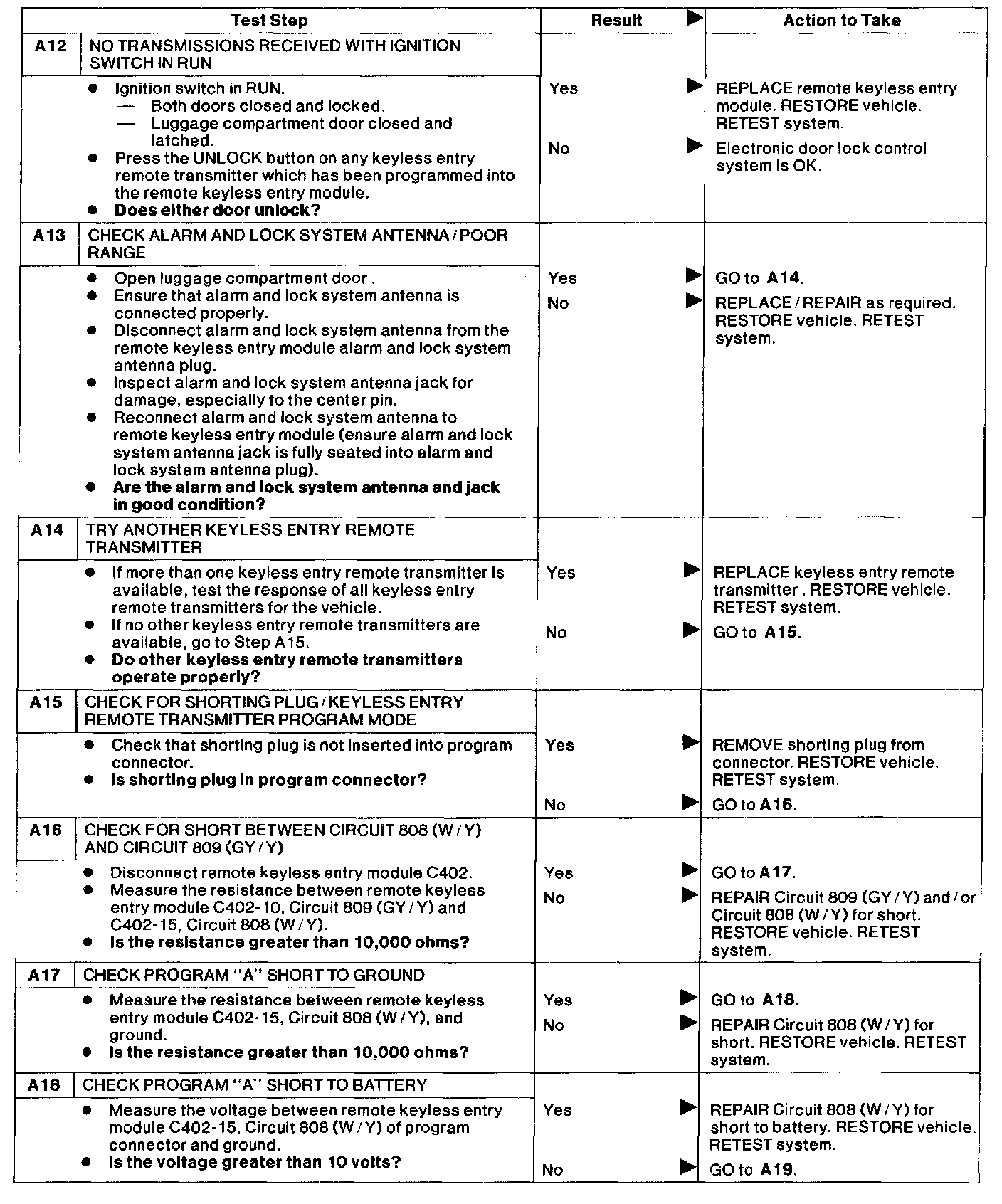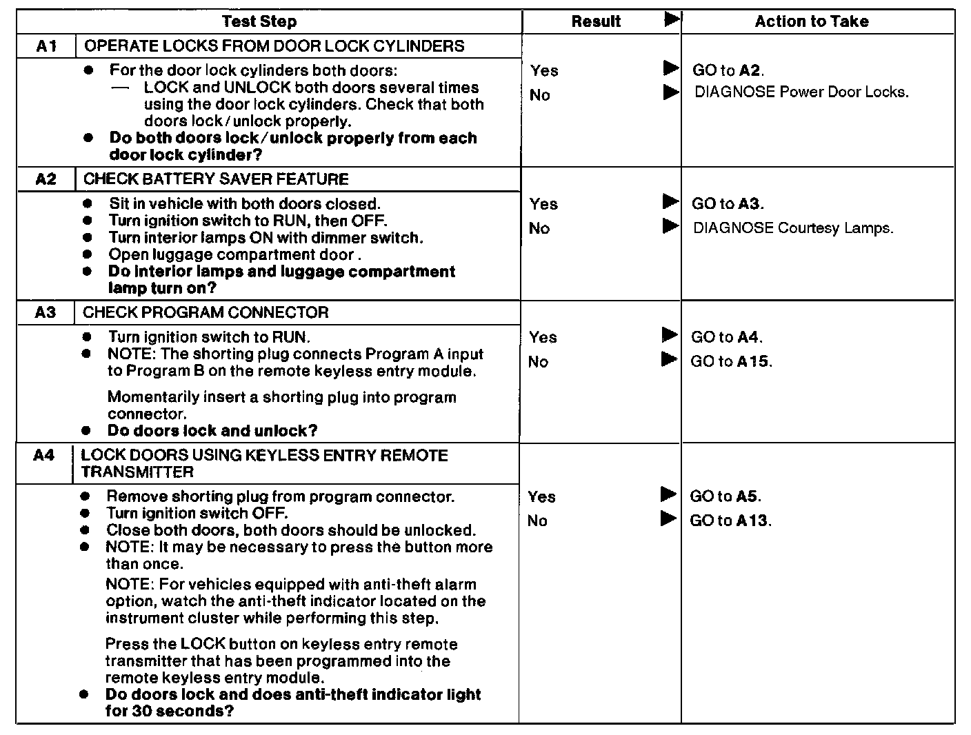 Test A: Doors Do Not Lock or Unlock Using Remote Transmitter